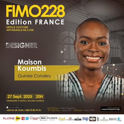 Koumba Cissé prendra part à ce rendez-vous de mode avec sa marque, Maison Koumbis, qui puise son inspiration dans le « storytelling made in Guinée ». Pour cette édition française du FIMO228, elle présentera une collection inédite qui rend hommage à la richesse culturelle et à la créativité de son pays. À travers ce défilé, Koumba souhaite faire rayonner la Guinée sur la scène internationale et rappeler que la mode africaine est un langage universel capable d’allier tradition, innovation et responsabilité.
